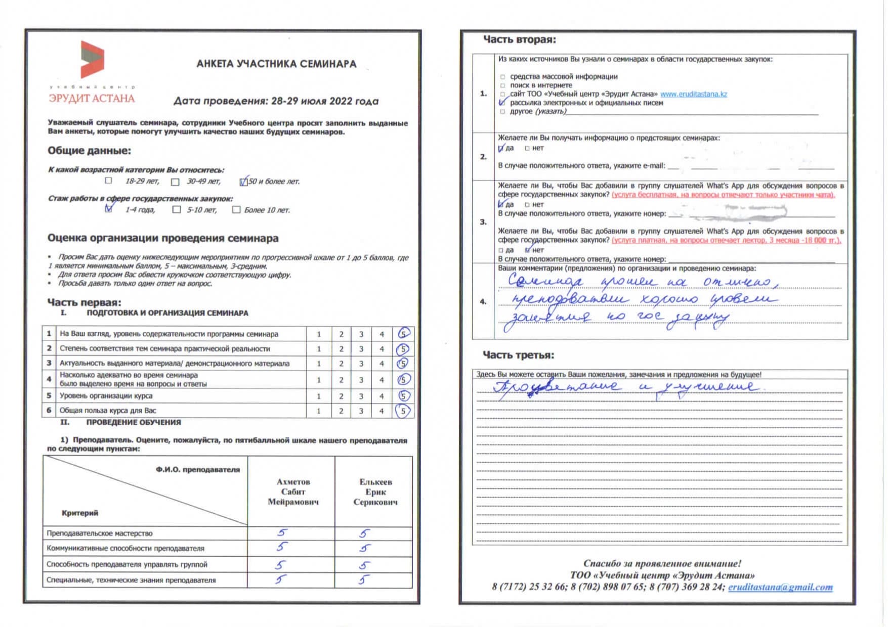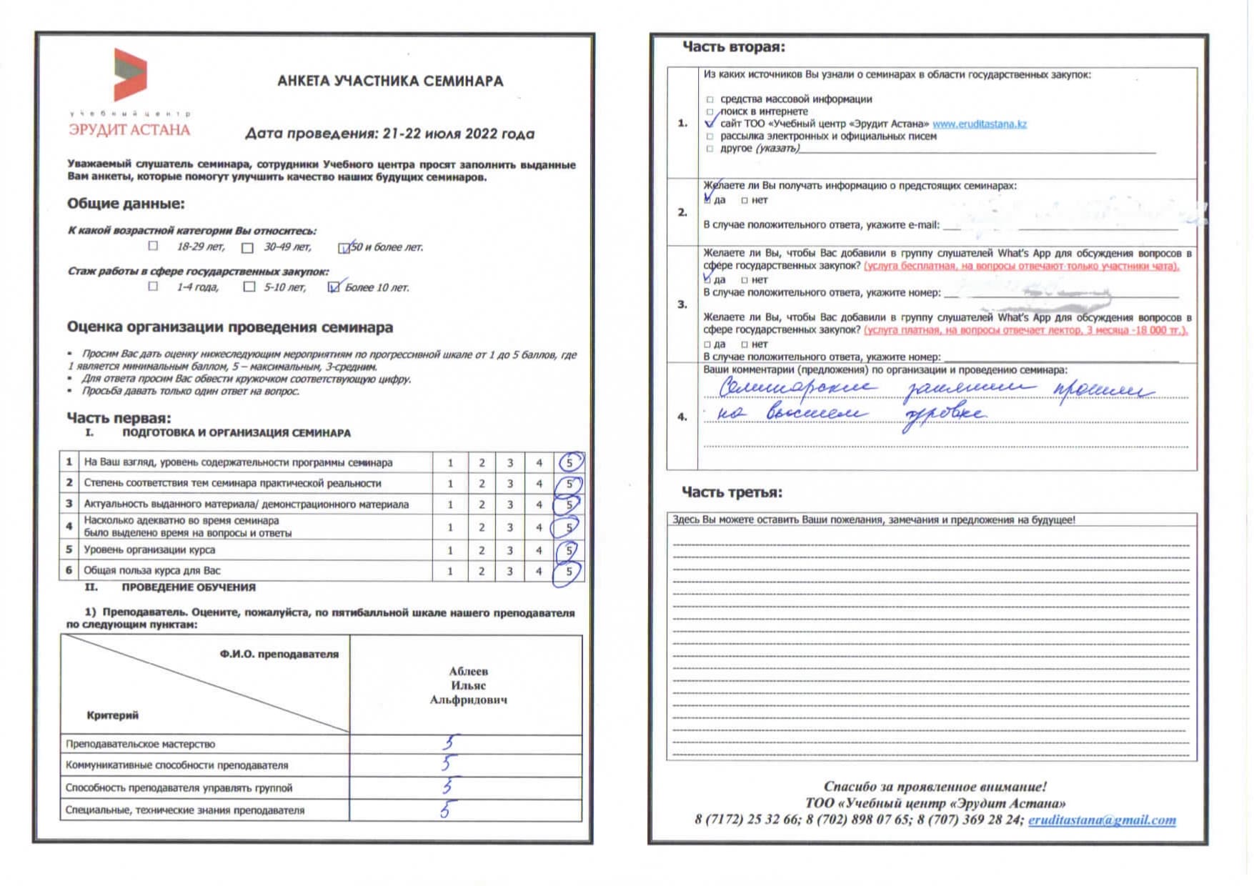 Оценки и комментарии участников о качестве программ, работе лекторов и организации обучения.